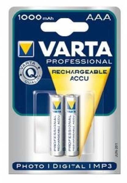 Varta 1x2 Professional NiMH 1000 mAh AAA. Battery type Rechargeable battery, Battery technology Nickel-Metal Hydride (NiMH), Battery voltage 1.2 V. Weight 13 g. Cylindrical battery size AAA