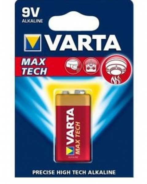 Varta 9V. Battery type Single-use battery, Battery size 9V, Battery technology Alkaline. Width 26.5 mm, Depth 17.5 mm, Height 48.5 mm. Package depth 19 mm, Package height 120 mm, Package weight 51 g. Battery form factor Prismatic