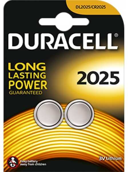 Duracell Specialties - Electronics batteries 2025 2PK. Battery type Single-use battery, Battery size CR2025, Battery technology Lithium. Height 2.5 mm, Diameter 2 cm, Weight 2.2 g. Battery form factor Button/coin