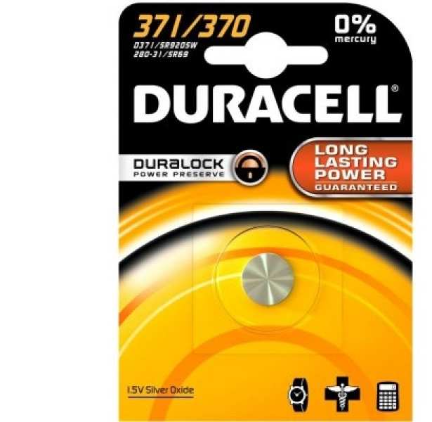 Duracell 371/370. Battery type Single-use battery, Battery size SR69, Battery technology Silver-Oxide (S). Battery form factor Button/coin