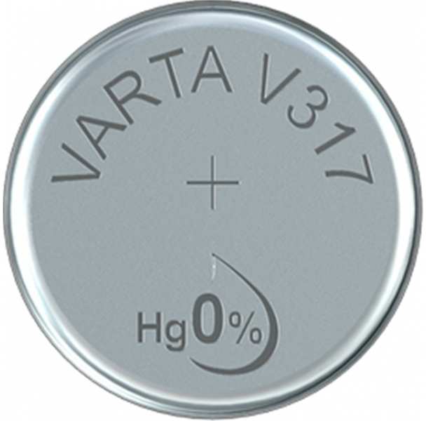 Varta V317. Battery type Single-use battery, Battery technology Silver-Oxide (S), Battery voltage 1.55 V. Height 1.7 mm, Diameter 5.8 mm, Weight 0.2 g. Battery form factor Button/coin