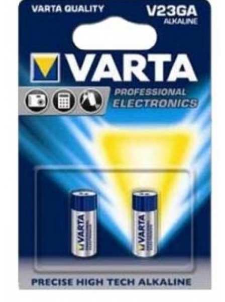 Varta 2x V23GA. Battery type Single-use battery, Battery size A23, Battery technology Alkaline. Height 28.5 mm, Diameter 1.03 cm, Weight 7.7 g. Package width 80 mm, Package depth 7 mm, Package height 120 mm. Battery form factor Cylindrical, Shape Cylinder