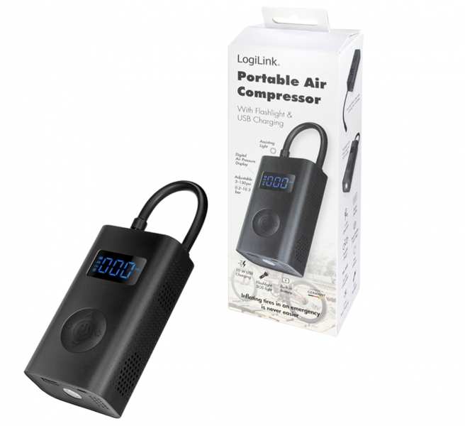 LogiLink Mobile Air Compressor with LED Flashlight 1x USB-A PA0265