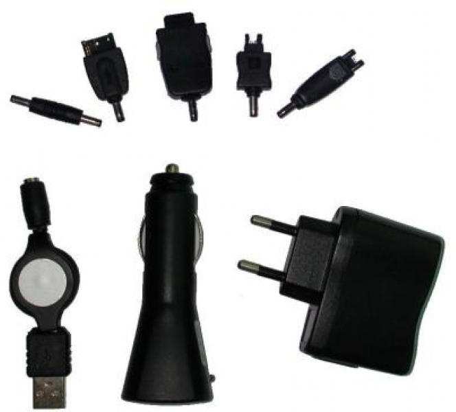 Kenmerken Geschenk-Set, enthält verschiedenes Zubehör für Handys Handy Lade-Ausstattung hiermit können Sie Ihr Handy aufladen Vom Auto-Zigarettenanzünder Von einem Gleichspannungsanschluss Vom PC/Notebook (USB Anschluss) Unterstützt die folgenden Handy Modelle Nokia, Motorola V60 Serie, Samsung A288 Serie, Sony-Ericsson T28 Serie, Siemens C55 SerieSpecificatiesOutput 5VDC +/-5%, 0.45 A maxDC input 12...24 VDCAC input 100...250 VACOutput of USB cable with the built-in voltage booster (optional) 5.8 VDC, 0.4 A max
