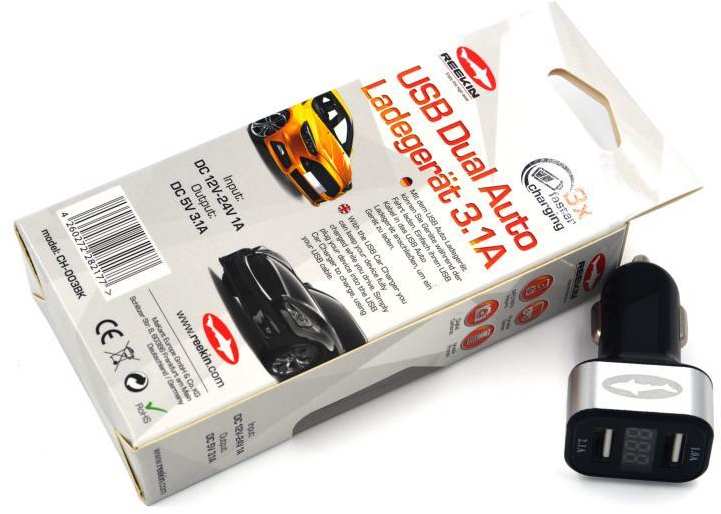 Input DC 12V-24V 1A Output DC 5V 3.1A 3x faster charging! with Ampere Display