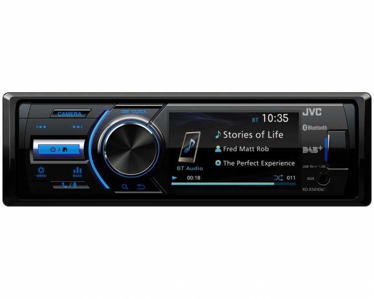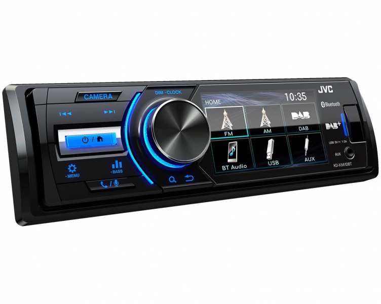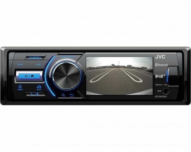 KD-X561DBT. combines a DAB+ car radio in 1-DIN format with a 3-inch TFT color display. It takes up about half of the radio front and shows an overview of all audio sources, station lists and music titles as well as various setting menus. In addition to videos, the image from a rear view camera can also be displayed.