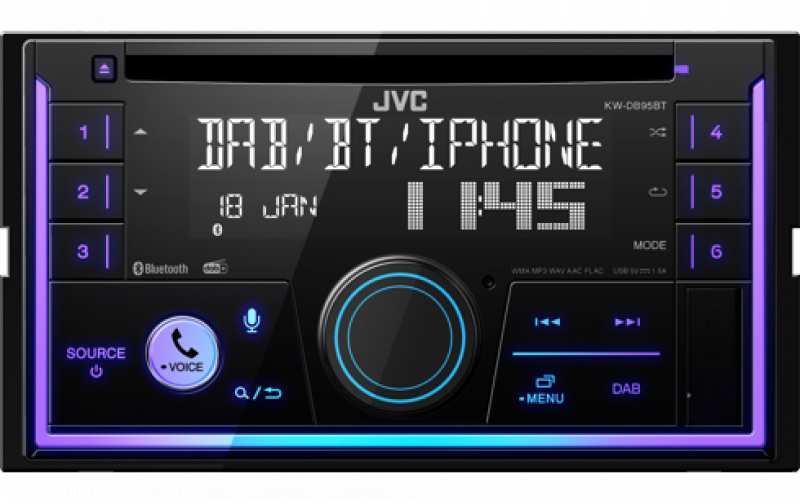 Digital radio reception DAB+ and analog radio reception via FM with RDS data services Bluetooth hands-free function & audio streaming (A2DP) including advanced control & search functions (AVRCP) Compatible with Amazon Alexa voice control and data services Compatible with voice control of Android/iOS devices Bluetooth Phonebook Access (PBAP) Automatic pairing for iPhone Low battery warning indicator Easy-to-read 2-line LCD display with high contrast and wide viewing angle Variable key lighting Control the car radio with the JVC remote control app (JVC Remote App) via your smartphone (Android & iOS) The JVC Streaming DJ app allows audio streaming from up to 5 connected smartphones Illuminated front USB and AUX input with dust cover USB fast charging function with up to 1.5 A Playback of MP3/WMA/AAC/WAV and FLAC audio files iPod/IPhone music playback Digital time correction (DTA), DSP and 13-band EQ for extensive sound settings K2 sound tuning technology to restore the original sound by expanding the frequency range and bit rate 3 preamplifier outputs with 2.5V for connecting external power amplifiers Five selectable menu languages ??(German, English, French, Russian, Spanish)