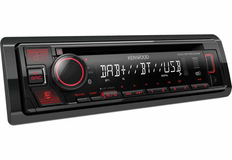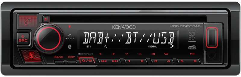 JVC Kenwood KDC-BT450DAB. CD/USB receiver with Bluetooth & DAB+ digital radio.The DAB+ tuner receives the more than 200 digital radio stations available in Germany free of noise, crackling and level fluctuations. And if a sufficiently strong DAB broadcast signal is not available, the tuner automatically switches temporarily to the appropriate FM frequency without any audible interruption. Seamless Blending, an intelligent data buffer, ensures seamless crossfades without annoying level and time offsets