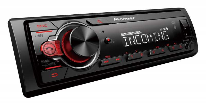 MVH-330DAB. 1-DIN car radio with DAB/DAB+, Bluetooth, red lighting and USB compatible with Android smartphones. This combined 1-DIN Bluetooth and DAB receiver is very easy to use thanks to its large rotary knob.