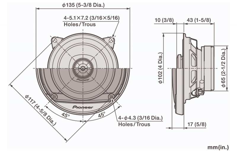 Pioneer TS-A1081F. 13cm 3-way coaxial speaker (300W). Upgrade your vehicle's original sound system. Our A-Series gives you the easy-to-install sound enhancement solution you've been looking for.