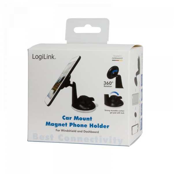 Suitable for 4 6 smartphones Rotates 360 degree for perfect viewing angles Very fast fastening of a smartphone via metal plate and magnet Strong suction cup with sticky gel adhere to windshield Non-slip feet to keep your smartphone in the holder steadily Re-useable gel pad Suitable for smartphones with a weight up to 200g
