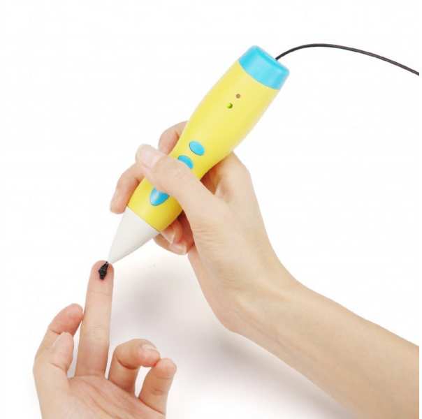 Kenmerken3D-Druckstift (freie Gestaltungsmöglichkeit)Funktioniert mit eingebautem Akku oder 5V USB-StromversorgungBis zu 1 Stunde Drucken mit einer einzigen AkkuladungNiedertemperatur-DruckdüseGeeignet für PCL-Filamente mit 1,75 mm DurchmesserSpecificatiesCase material plasticModel build size free formFilament PCL, 1.75mmNozzle diameter 0.70 mmExtruder temperature 70 - 95 °CPower consumption 5 VDC up to 1ABattery internal rechargeable Li-Polymer batteryCharging interface micro USBNet weight 78 gDimensions 150 x 33 x 33 mm1.2. Built-in rechargeable Li-Ion polymer battery,lasting for more than 1 hour3. Can be driven by built-in battery,power bank or computer USB outputParameters1.Voltage 5V/2A (available for power bank and computer USB output)2. Power supplier built-in battery,AC/DC adapter , power bank or computer USB output3. Pen Material plastic4. Nozzle 0.7mm diameter ceramic5. Printing material 1.75mm PCL low temperature filament6. Print range unlimited7. Temperature unadjustable8. Color blue/purple/yellow/white9. Pen size 150*33*33mm10. Pen net weight 78gInhoud3D penFilament 3m (3x)USB cableUser manualPrint templates
