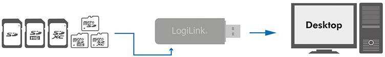Card Read/Write device for Secure Digital (Micro-)SD, (Micro-)SDHC, (Micro-)SDXC Connection to an external USB 3.0 port Max. data transfer rate 5 Gbit/s Compatible with Windows XP/Vista/7.