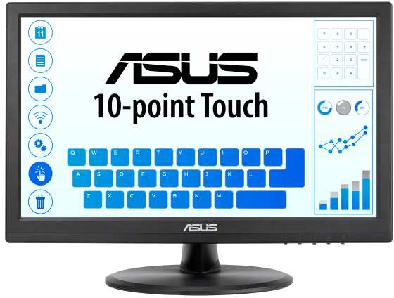 ASUS VT168HR. Display diagonal 39.6 cm (15.6), Display resolution 1366 x 768 pixels, HD type WXGA, Display technology LED, Response time 5 ms, Native aspect ratio 169, Viewing angle, horizontal 90°, Viewing angle, vertical 60°. Built-in USB hub. VESA mounting. Product colour Black