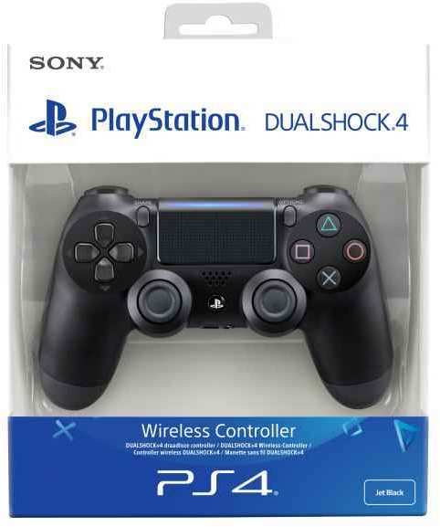 Input device Device type Gamepad Gaming platforms supported PlayStation 4 Gaming control technology Analogue / Digital Gaming control function keys D-pad, Home, Share Reflex vibration Ja Analog thumbsticks Ja Shoulder buttons Ja Built-in touchpad Ja Accelerometer Ja Gyroscope Ja Number of axis 3 LED backlight Ja Ports & interfaces Connectivity technology Wired/Wireless Device interface Bluetooth Bluetooth version 2.1+EDR Frequency range 2.4 Headphone out Ja Combo headphone/mic port Ja Battery Built-in battery Ja Battery capacity 1000 mAh Operational conditions Operating temperature (T-T) 5 - 35 °C Technical details Colour of product Black Plug and Play Ja Quantity 1 Number of vibration motors 2 Built-in speaker(s) Ja Detachable cable Ja Weight & dimensions Weight 210 g Width 162 mm Depth 98 mm Height 52 mm Packaging data Package type Window box