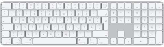 Apple Magic. Keyboard form factor Full-size (100%). Keyboard style Straight. Device interface USB + Bluetooth, Recommended usage Universal. Product colour Aluminium, White