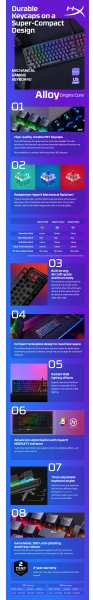 HyperX Alloy Origins Core - Mechanical Gaming Keyboard - HX Red (US Layout). Keyboard form factor Tenkeyless (80 - 87%), Device interface USB, Keyboard key switch Mechanical, Keyboard layout QWERTY. Backlight type RGB LED. Cable length 1.8 m. Recommended usage Gaming. Product colour Black