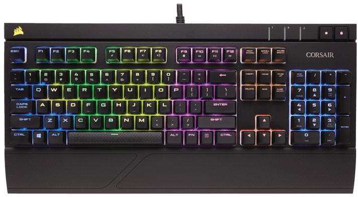 Corsair KB CH-9000227-DE Gaming Keyboard STRAFE RGB - Cherry MX Red (DE Layout) USB / aluminum chassis / textured WASD, 1-6 number keys / wrist rest / Cherry MX Mechanical Switches / LED Backlight Ret
