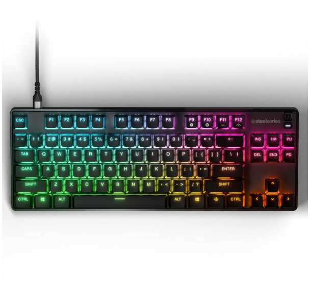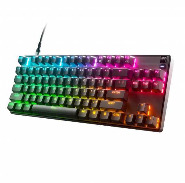 Steelseries Apex 9 TKL. Keyboard form factor Tenkeyless (80 - 87%), device interface USB, keyboard switch optomechanical key switch, keyboard structure QWERTY. Backlight Type RGB LED Recommended Use Gaming. Product color Black