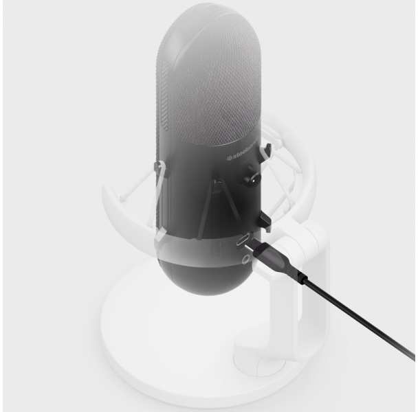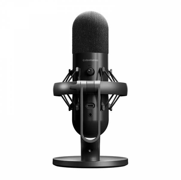 SteelSeries Alias streaming microphone black. Streaming microphone with RGB lighting. With integrated shock mount, integrated AI noise cancellation for background noise. Connect and get started thanks to plug-and-play via USB.
