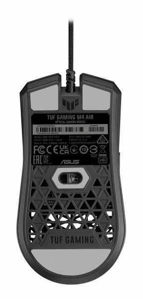 ASUS TUF Gaming M4 Air. Form factor Ambidextrous. Movement detection technology Optical, Device interface USB Type-A, Movement resolution 16000 DPI, Buttons quantity 6, Scroll type Wheel, Acceleration (max) 40 G. Power source Cable. Product colour Black