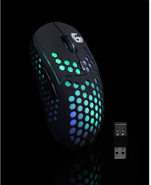 Mouse Purpose Gaming Device interface RF Wireless Scroll type Ring Buttons quantity 6 Buttons type Pressed buttons Movement resolution 1600 DPI Mouse tracking speed 60 ips Customizable movement resolution Y Number of scroll wheels 1 Acceleration (max) 8 G Polling rate 125 Hz Buttons durability (million clicks) 3 Design Form factor Ambidextrous Ergonomic design Y Product colour Black Rubber grips Y Illumination Y Power Power source Batteries Battery technology Lithium-Ion (Li-Ion) Battery capacity 400 mAh Weight & dimensions Width 64 mm Depth 150 mm Height 41 mm Weight 83 g Technical details Backlight Y Harmonized System (HS) code 84716070 Packaging data Quantity 1 Package type Box
