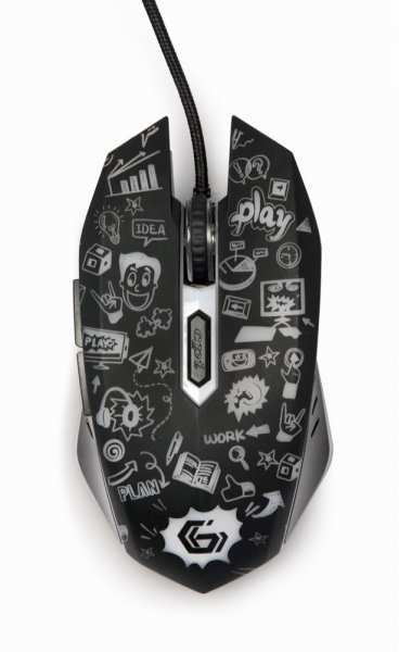 -COMFORT AND PRECISION. -Cartoon style graphic pattern design. -Color changing LED backlight. -Non-slip rubberized ergonomic design.