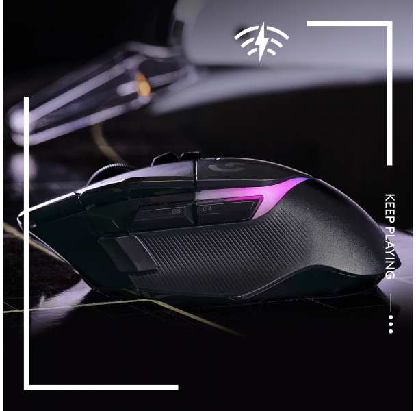 Mouse Purpose Gaming Device interface RF Wireless Movement detection technology Optical Scroll type Wheel Buttons quantity 13 Buttons type Pressed buttons Movement resolution 25600 DPI Mouse tracking speed 400 ips Customizable movement resolution Y Programmable mouse buttons Y Number of programmable buttons 13 Number of scroll wheels 1 Scrolling directions Vertical Acceleration (max) 40 G Built-in memory Y Design Form factor Right-hand Ergonomic design Y Product colour Black Surface coloration Monochromatic Feet material Polytetrafluoroethylene (PTFE) Illumination Y Illumination colour Multi Packaging content Receiver included Y Wireless receiver interface USB Type-A Receiver type Nano receiver User guide Y Power Power source Batteries Rechargeable Y Charging port type USB Type-C Number of batteries supported 1 Battery type Built-in battery Battery technology Lithium Polymer (LiPo) Battery capacity 500 mAh Battery life (max) 120 h System requirements Windows operating systems supported Windows 10, Windows 11 Mac operating systems supported Mac OS X 10.14 Mojave, Mac OS X 10.15 Catalina, Mac OS X 10.15.3 Catalina, Mac OS X 11.0 Big Sur, Mac OS X 12.0 Monterey Packaging data Cables included USB Type-A to USB Type-C Adapter included Y Quantity 1 Package width 69.5 mm Package depth 117 mm Package height 175 mm Package weight 393.9 g Weight & dimensions Width 41.1 mm Depth 79.2 mm Height 131.4 mm Weight 106 g Battery Battery capacity 1.85 Wh Other features Technology LIGHTSPEED Packaging content G502 X PLUS LIGHTSPEED Wireless Gaming Mouse DPI-Shift button cover USB-C charging cable LIGHTSPEED USB-A receiver USB extension cable user documentation sticker Number of profiles 5 Sensor HERO 25K Logistics data Master (outer) case width 147 mm Master (outer) case length 244 mm Master (outer) case height 188 mm Master (outer) case gross weight 1.74 kg