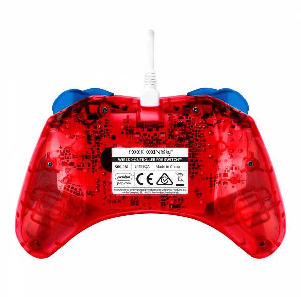 PDP Rock Candy Mario Punch. Device type Gamepad, Gaming platforms supported Nintendo Switch, Nintendo Switch Lite, Nintendo Switch OLED, Gaming control function buttons D-pad, Menu button. Connectivity technology Wired, Device interface USB, USB connector type Micro-USB. Product colour Red, Translucent, Housing material Polycarbonate (PC), Cable length 2.5 m. Power source Cable. Package type Window box