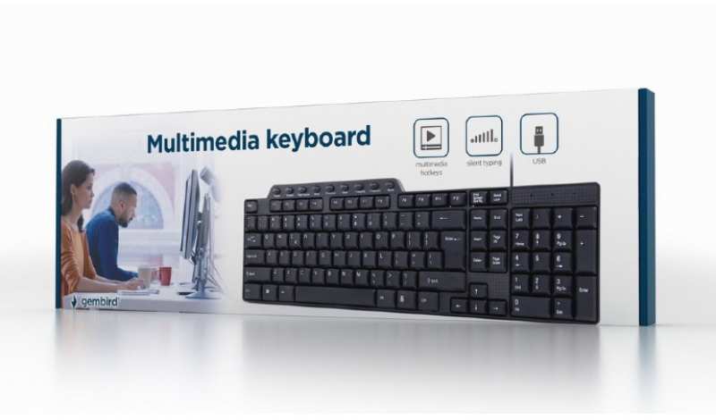 Kenmerken Standard-Tastatur mit 111 Tasten 9 praktische Multimedia-Tasten für Internet und MusikSpecificatiesInterface USBDimensions 410 x 133 x 23 mmWeight 420 gCable length 130 cmSystemeisenWindows 7/8/10USB-Anschluss