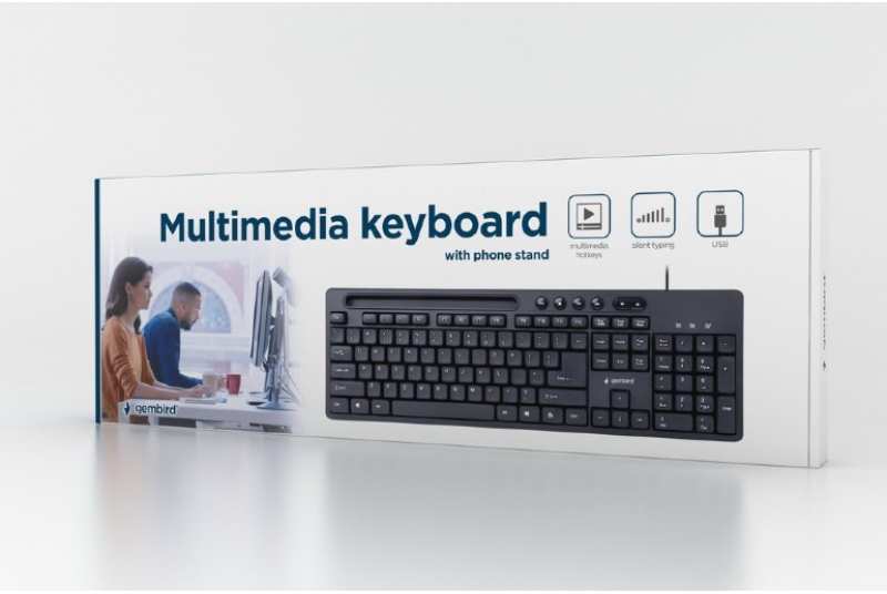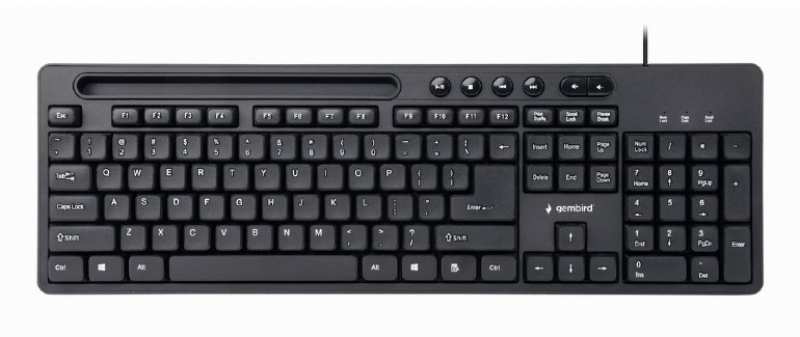 Keyboard Device interface USB Keyboard layout QWERTY Keyboard language US English Keyboard form factor Standard Numeric keypad Y Keyboard number of keys 104 Hot keys Y Number of hot keys 6 Multimedia keys Y USB hub Y Features Cable length 1.5 m Retractable smartphone holder Y Power Power source type USB Power consumption 50 mA Charging source USB Design Product colour Black System requirements Windows operating systems supported Windows 10,Windows 7,Windows 8 Weight & dimensions Keyboard dimensions (WxDxH) 435 x 146 x 26 mm Keyboard weight 440 g Sustainability Sustainability certificates CE, RoHS Packaging data Number of products included 1 pc(s) Package type Box