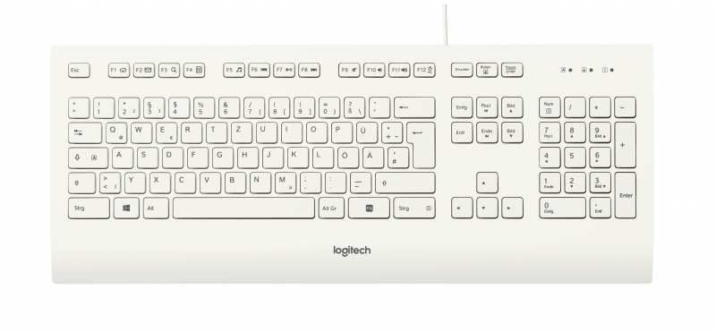 Logitech K280e. Keyboard form factor Standard. Keyboard style Straight. Connectivity technology Wired, Device interface USB, Keyboard layout QWERTZ, Recommended usage Office. Product colour White