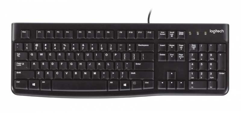 Logitech K120. Connectivity technology Wired, Device interface USB, Keyboard layout QWERTY. Cable length 1.5 m. Product colour Black