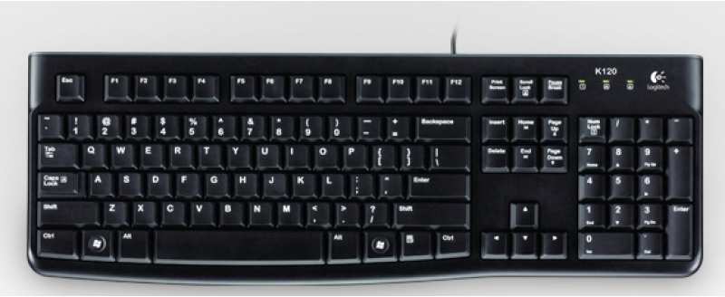 Logitech K120. Keyboard form factor Standard, Connectivity technology Wired, Device interface USB, Keyboard layout QWERTZ. Cable length 1.5 m. Recommended usage Office. Product colour Black