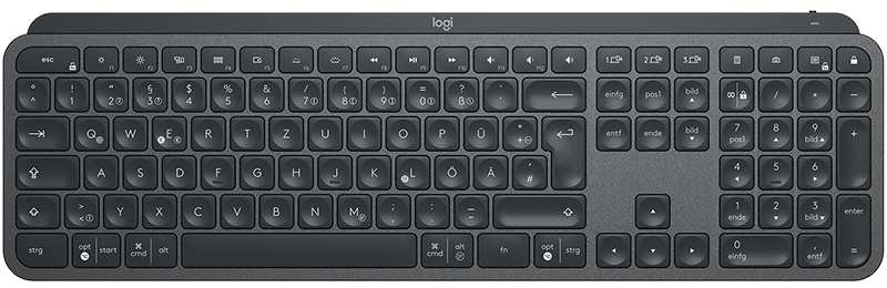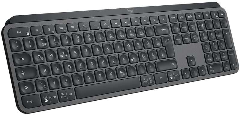 Logitech MX Keys. Keyboard form factor Standard. Keyboard style Straight. Device interface RF Wireless + Bluetooth, Keyboard layout QWERTZ, Recommended usage Universal. Product colour Black