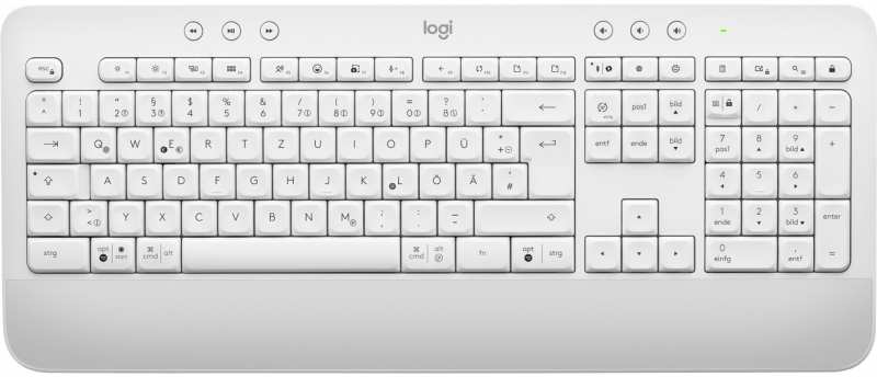 Logitech Signature K650. Keyboard form factor Full-size (100%). Keyboard style Straight. Device interface RF Wireless + Bluetooth, Keyboard key switch Membrane, Keyboard layout QWERTZ. Wrist rest. Recommended usage Office. Product colour White