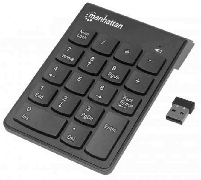 Manhattan 178846. Device interface RF Wireless, Purpose Notebook/PC, Keys operating life 5 million characters. Product colour Black, Material ABS synthetics, Certification USB 1.1 FCC CE RoHS2 WEEE. Receiver type Micro, Wireless receiver interface USB. Power source type Battery, Battery type AAA. Width 85 mm, Depth 140 mm, Height 23 mm