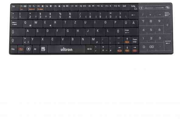 Ultron UMT-BT. Keyboard form factor Standard, Keyboard style Straight, Connectivity technology Wireless, Device interface Bluetooth, Keyboard layout QWERTZ, Keyboard number of keys 98. Product colour Black