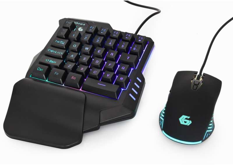 -2-in-1 gaming kit compact gaming keyboard and high-resolution gaming mouse. -35-key keyboard for one hand with Multimedia keys. -7-button optical mouse (resolution 1000 - 1600 - 3200 CPI). -Rainbow LED backlight effect in both, keyboards and mou