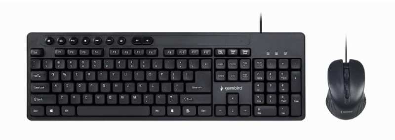 Gembird KBS-UM-04. Keyboard form factor Full-size. Keyboard style Straight. Device interface USB, Keyboard layout QWERTY, Keyboard number of keys 111. Cable length 1.5 m. Recommended usage Universal. Product colour Black. Mouse included