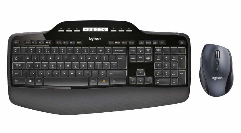 Logitech MK710. Keyboard form factor Standard. Keyboard style Straight. Connectivity technology Wireless, Device interface RF Wireless, Keyboard layout QWERTY, Keyboard number of keys 110. Wrist rest. Recommended usage Home. Product colour Black. Mouse included