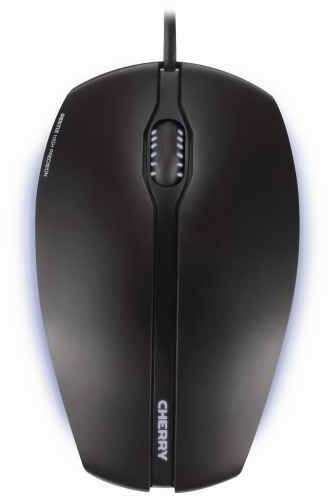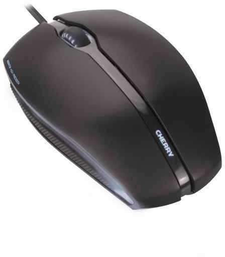 CHERRY Gentix Illuminated. Form factor Ambidextrous. Movement detection technology Optical, Device interface USB, Movement resolution 1000 DPI, Buttons type Pressed buttons, Buttons quantity 3, Scroll type Wheel. Power source Cable. Mouse weight 120 g. Product colour Black