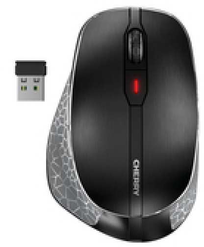 CHERRY MW 8C ERGO. Form factor Right-hand. Movement detection technology Optical, Device interface RF Wireless + Bluetooth, Movement resolution 3000 DPI, Buttons type Pressed buttons, Buttons quantity 6, Scroll type Wheel. Power source Batteries. Works on any surface. Product colour Black, Grey