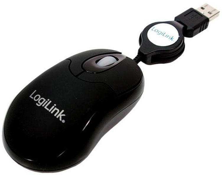 LogiLink Mini USB optical mouse with retractable cable black (ID0016)
