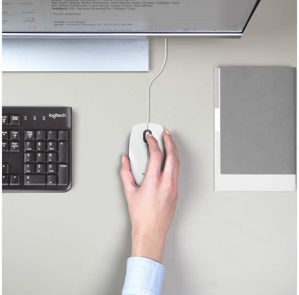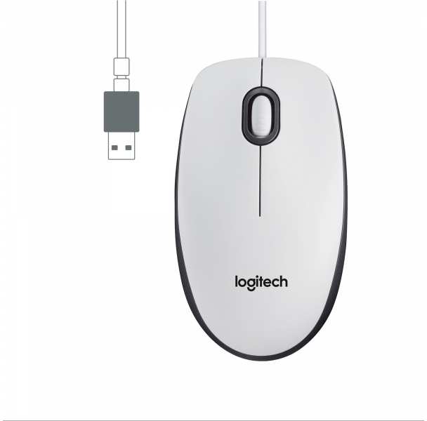 Logitech Mouse M100. Form factor Ambidextrous. Movement detection technology Optical, Device interface USB Type-A, Movement resolution 1000 DPI, Buttons type Pressed buttons, Buttons quantity 3, Scroll type Wheel. Power source Cable. Product colour White