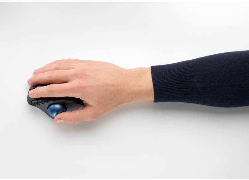 Logitech ERGO M575 Wireless Trackball Mouse. Form factor Right-hand. Movement detection technology Trackball, Device interface RF Wireless+Bluetooth, Movement resolution 2000 DPI, Buttons type Pressed buttons, Buttons quantity 5, Scroll type Wheel. Power source Batteries. Product colour Graphite