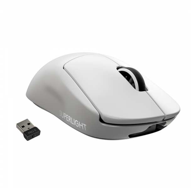 Logitech G PRO X SUPERLIGHT. Form factor Right-hand. Device interface RF Wireless, Movement resolution 25400 DPI, Response time 1 ms, Buttons type Pressed buttons, Buttons quantity 5, Scroll type Wheel, Acceleration (max) 40 G. Power source Batteries. Product colour White