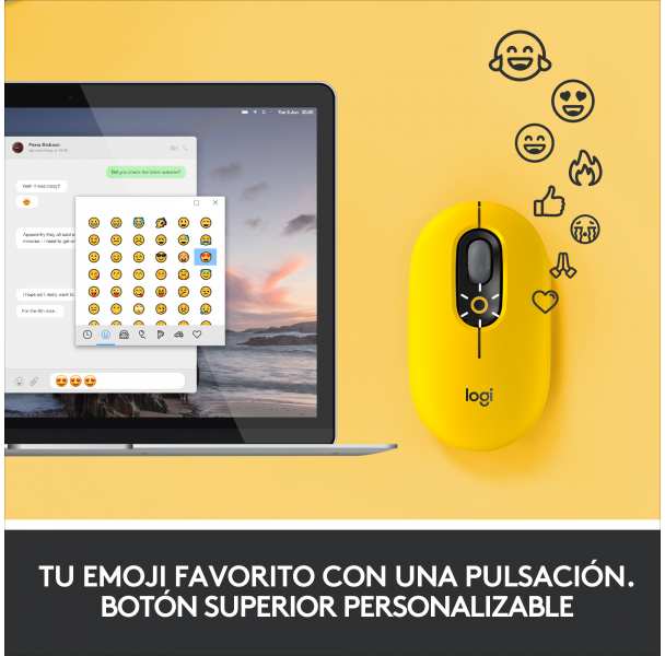 Logitech POP Mouse. Form factor Ambidextrous. Movement detection technology Optical, Device interface RF Wireless+Bluetooth, Movement resolution 4000 DPI, Buttons type Pressed buttons, Buttons quantity 4, Scroll type Wheel. Power source Batteries. Product colour Yellow