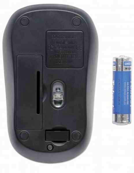 Manhattan 179393. Form factor Ambidextrous. Movement detection technology Optical, Device interface RF Wireless, Movement resolution 1000 DPI, Buttons type Pressed buttons, Buttons quantity 3, Scroll type Wheel. Power source Batteries. Mouse weight 50 g. Product colour Black,Green