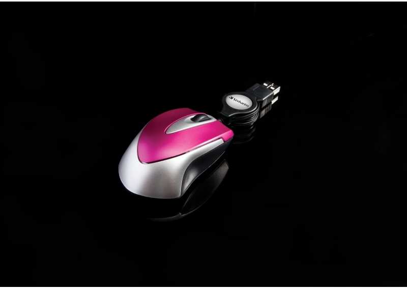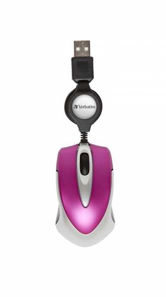 Verbatim Go Mini. Movement detection technology Optical, Device interface USB, Movement resolution 1000 DPI, Buttons quantity 2, Scroll type Wheel. Product colour Pink